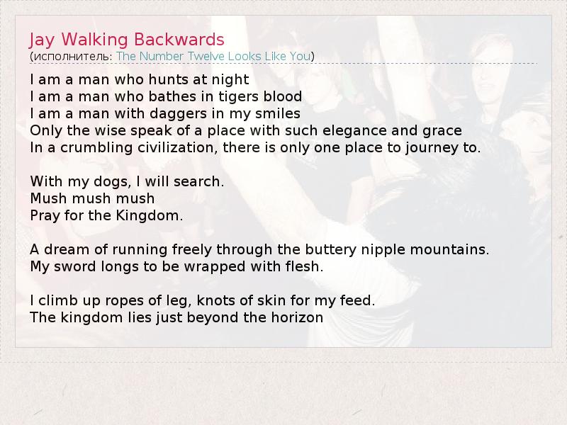 А как ты думаешь, о чем песня "Jay Walking Backwards" ?
