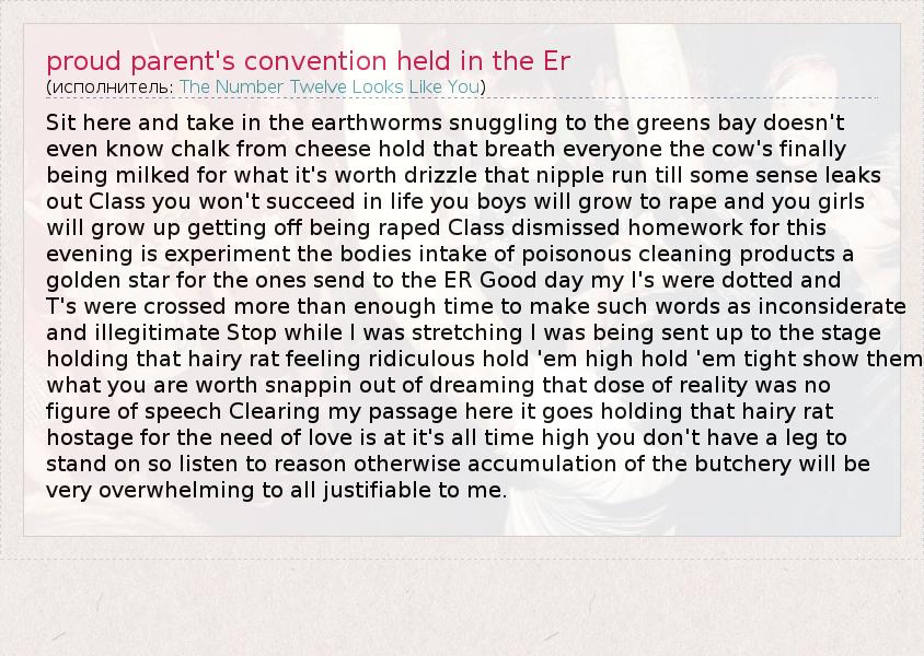 ГлавнаяИсполнителиThe Number Twelve Looks Like Youproud parent's convention held in the Er