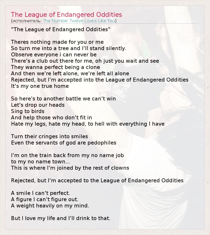 А как ты думаешь, о чем песня "The League of Endangered Oddities" ?