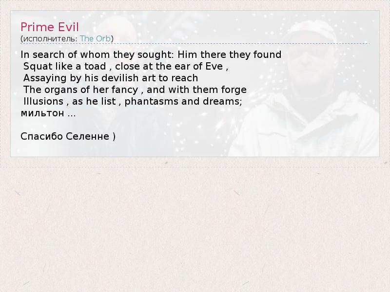 А как ты думаешь, о чем песня "Prime Evil" ?
