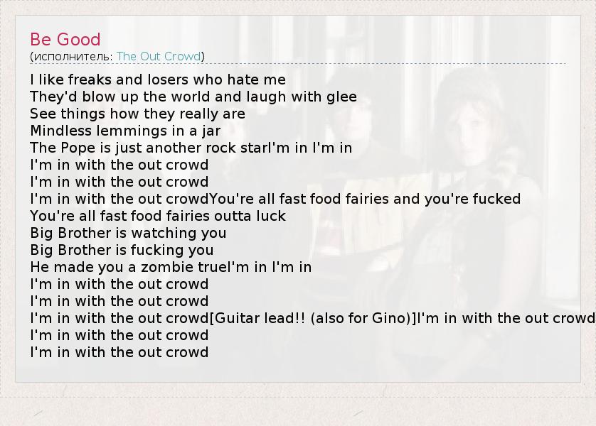 I'm in with the out crowd[Guitar lead!! (also for Gino)]I'm in with the out crowd