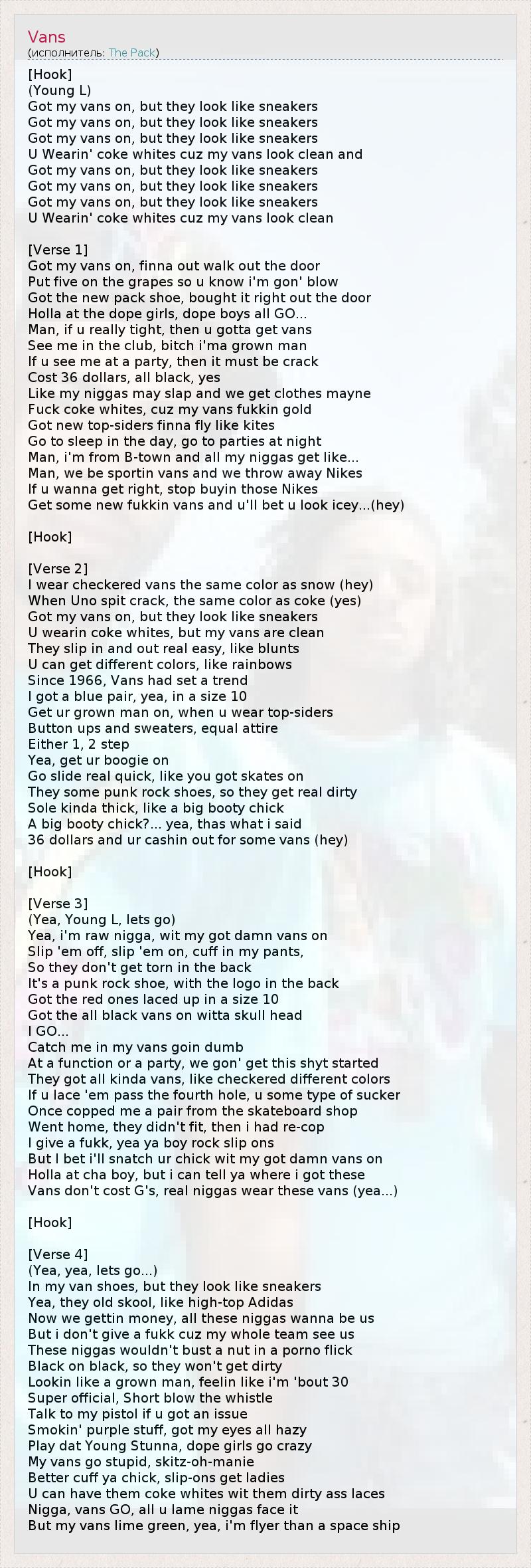 Vans don't cost G's, real niggas wear these vans (yea...)