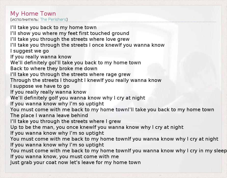 You must come with me back to my home townIf you wanna know why I cry in my sleep
