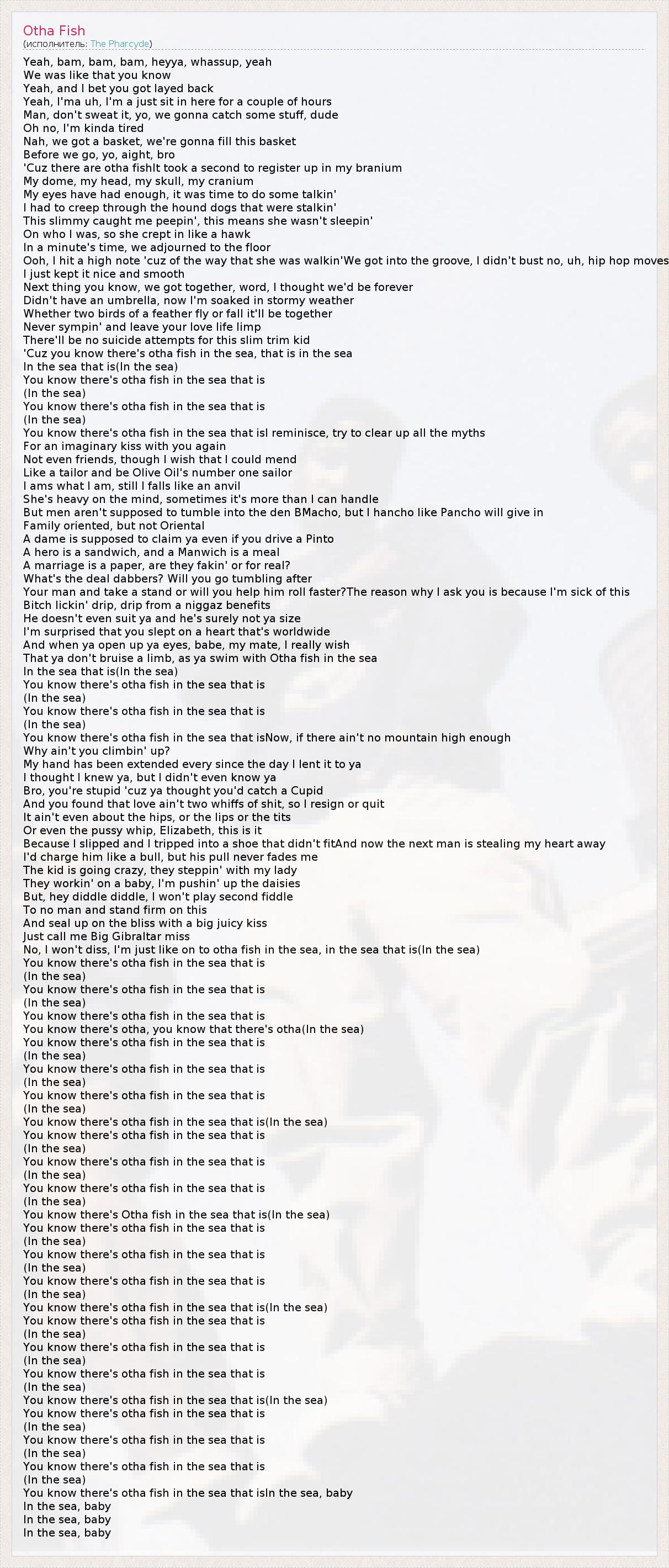 А как ты думаешь, о чем песня "Otha Fish" ?