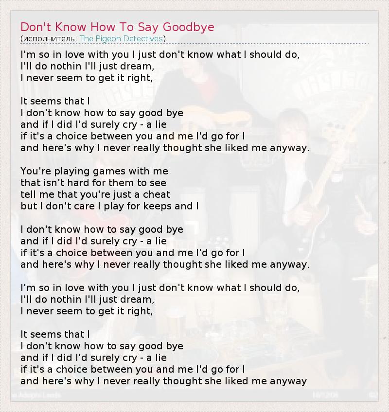 А как ты думаешь, о чем песня "Don't Know How To Say Goodbye" ?