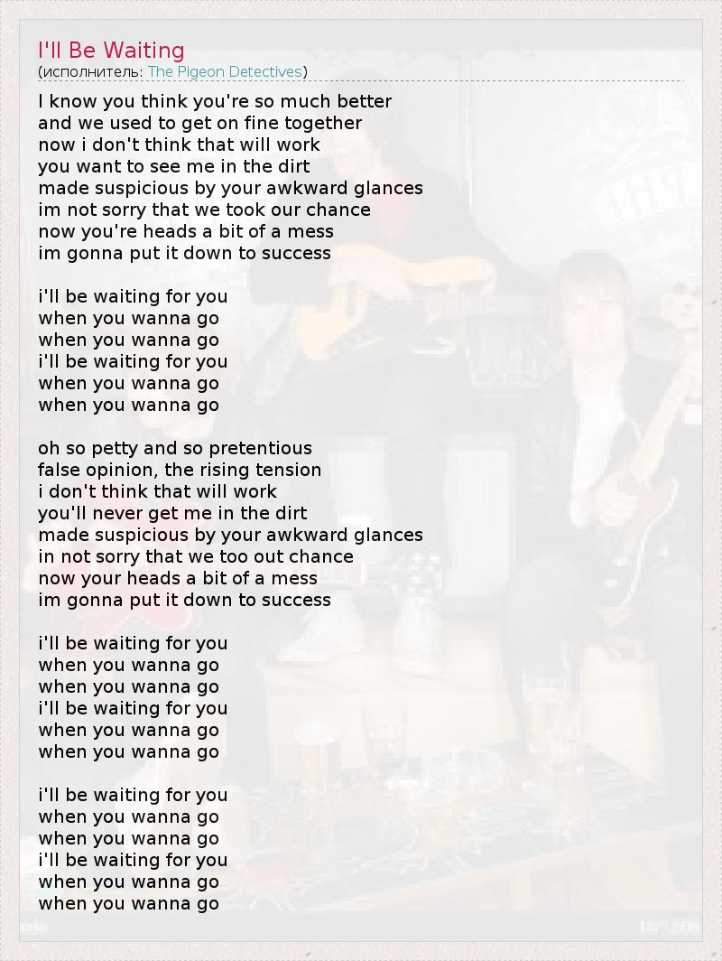 А как ты думаешь, о чем песня "I'll Be Waiting" ?