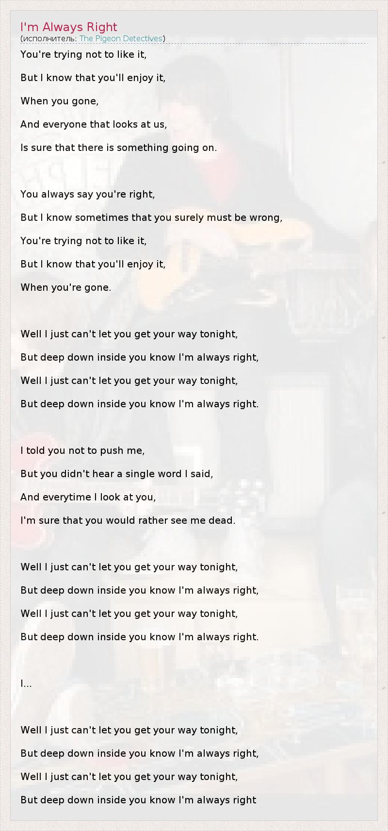 А как ты думаешь, о чем песня "I'm Always Right" ?