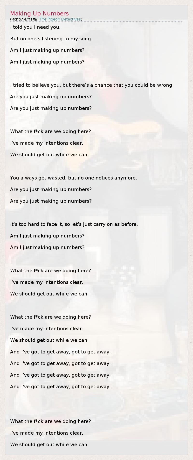 А как ты думаешь, о чем песня "Making Up Numbers" ?