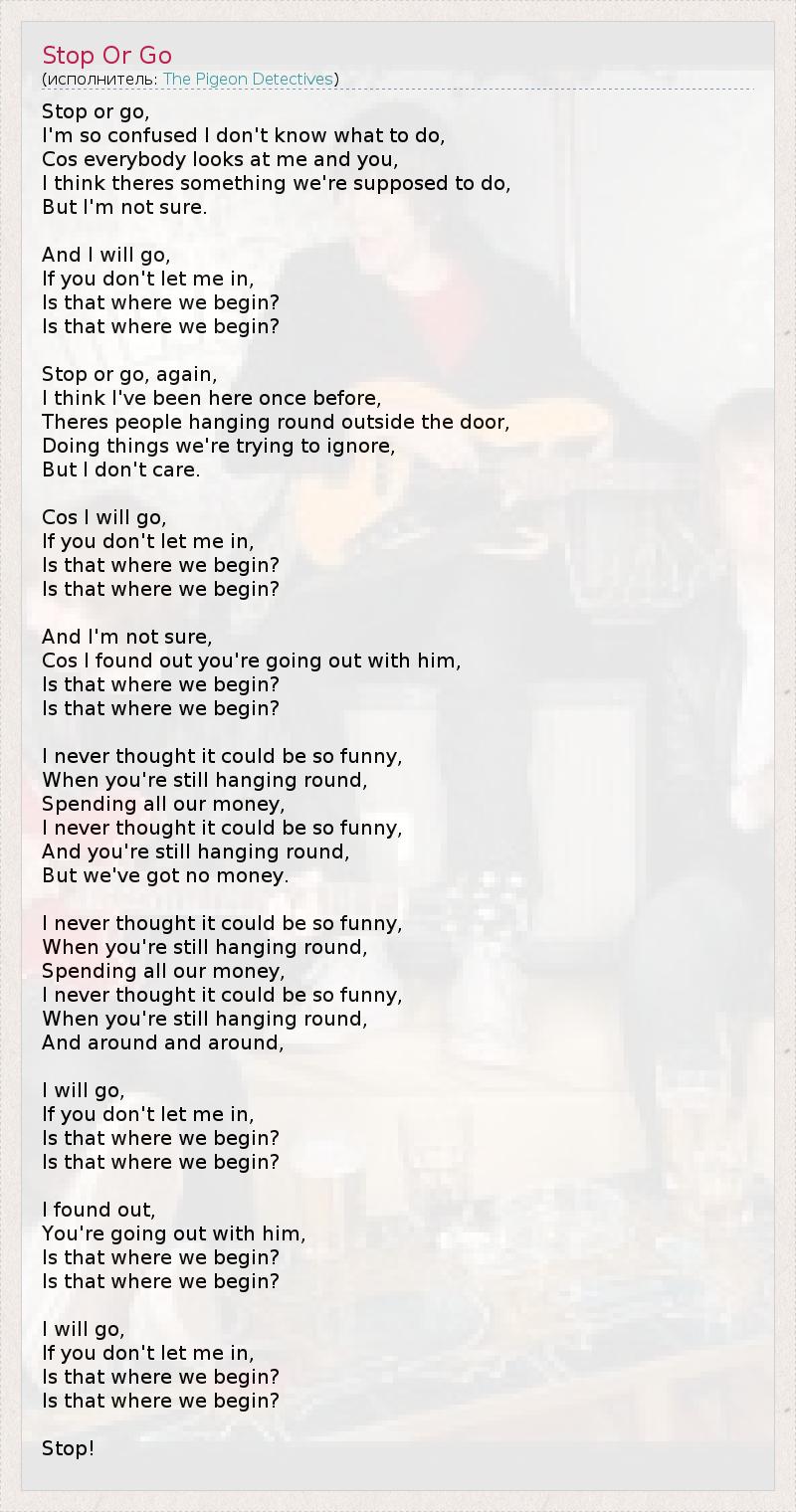 А как ты думаешь, о чем песня "Stop Or Go" ?