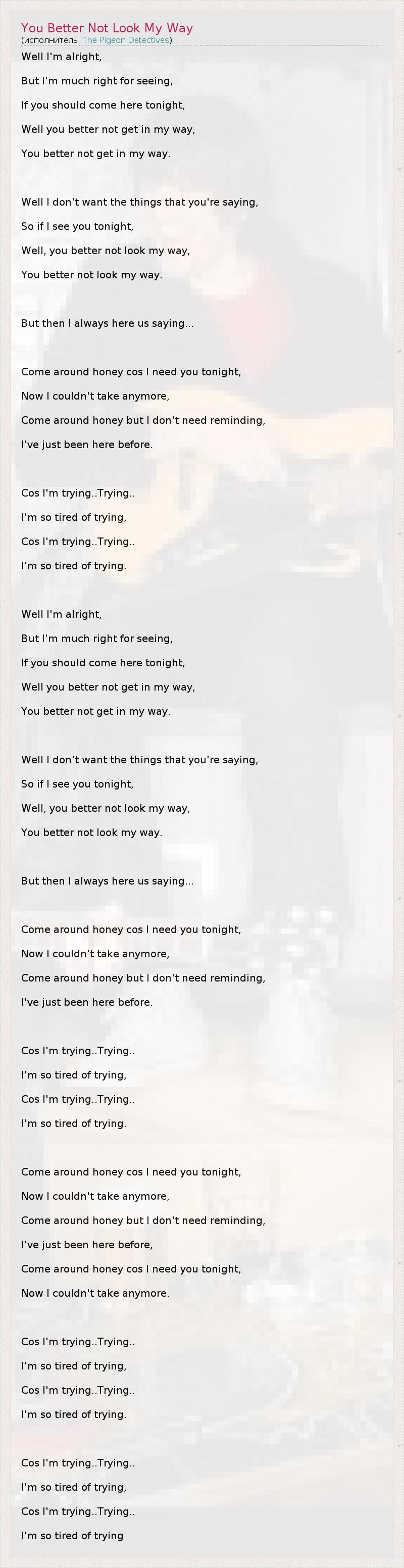 А как ты думаешь, о чем песня "You Better Not Look My Way" ?