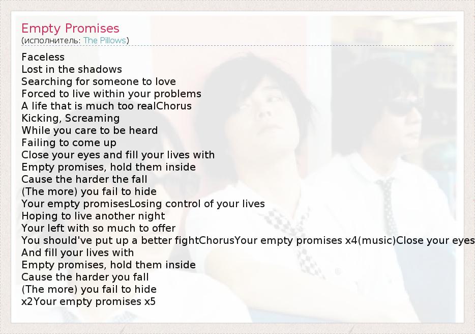 А как ты думаешь, о чем песня "Empty Promises" ?