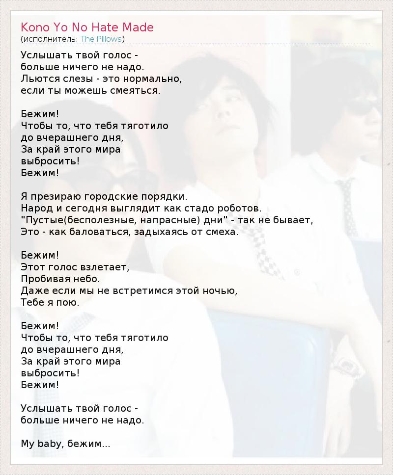 А как ты думаешь, о чем песня "Kono Yo No Hate Made" ?