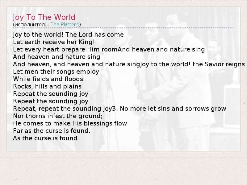 А как ты думаешь, о чем песня "Joy To The World" ?