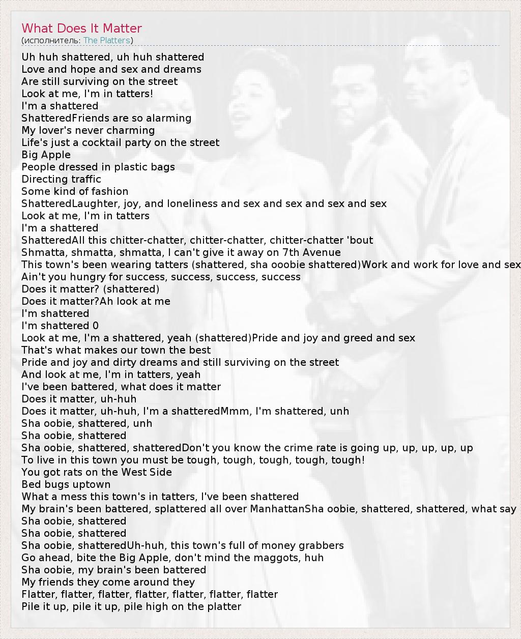 А как ты думаешь, о чем песня "What Does It Matter" ?