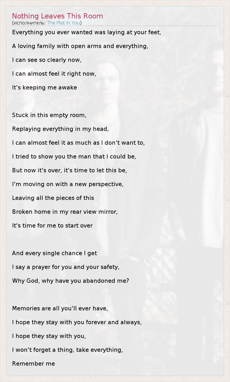 А как ты думаешь, о чем песня "Nothing Leaves This Room" ?