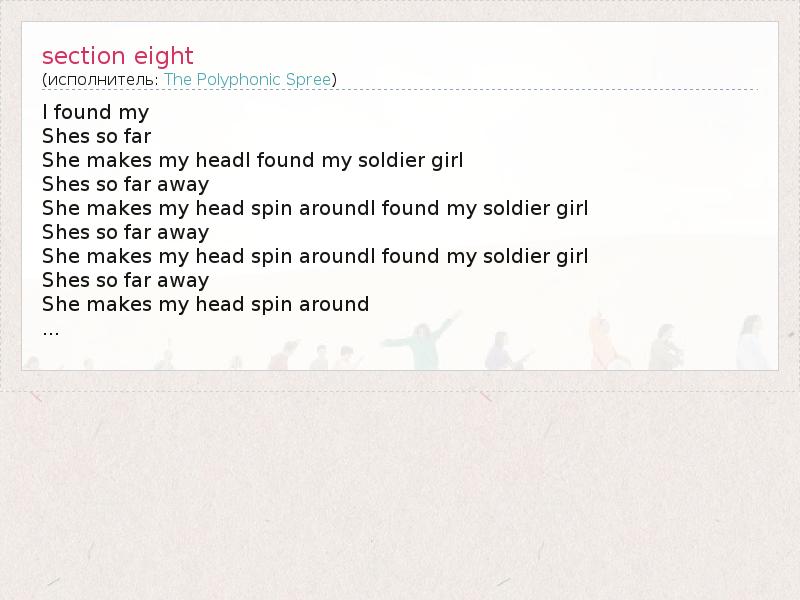 Это интересно:Dallas, Texas СШАОфициально образовались в летом 2005 года.Оригинальный стиль звучания этого немалочисленного коллектива сразу привлек внимание многих людей следящих за инди сценой.В шутку плоды творчества группы можно назвать детской музыкой для взрослых или взрослой музыкой для детей.Члены группы.. (их много :) )Вокал: TIM DELAUGHTER Бас: MARK PIRRO Барабаны: BRYAN WAKELAND Перкуссия:... продолжение