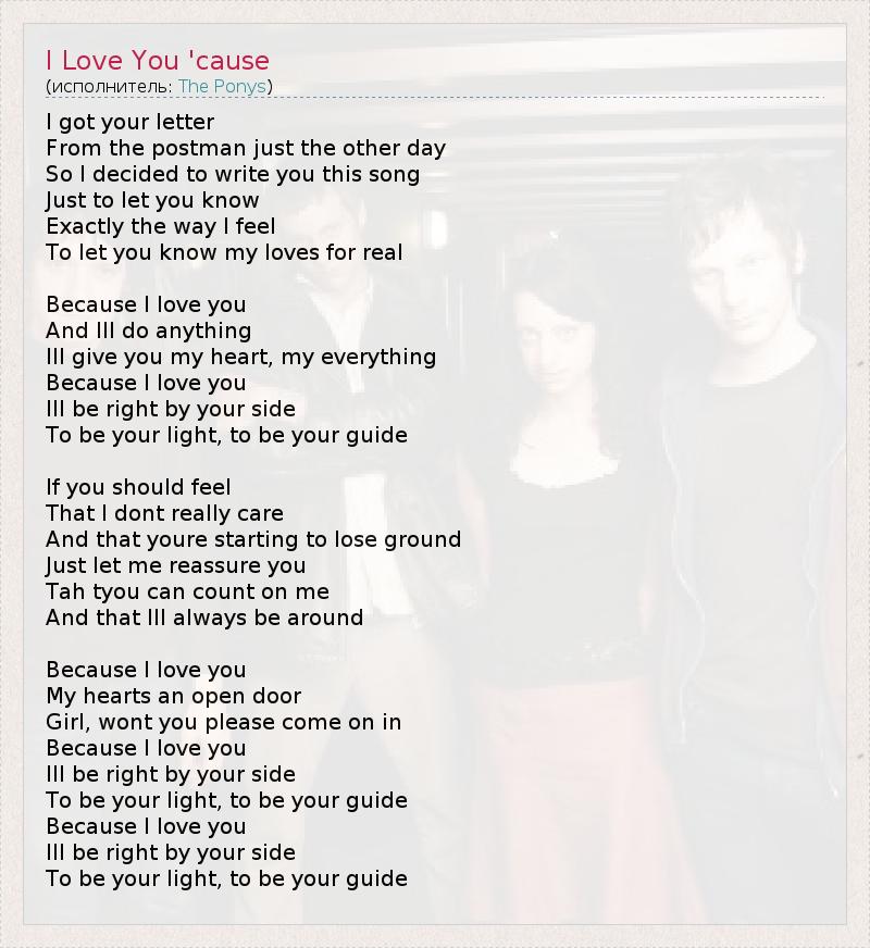 А как ты думаешь, о чем песня "I Love You 'cause" ?