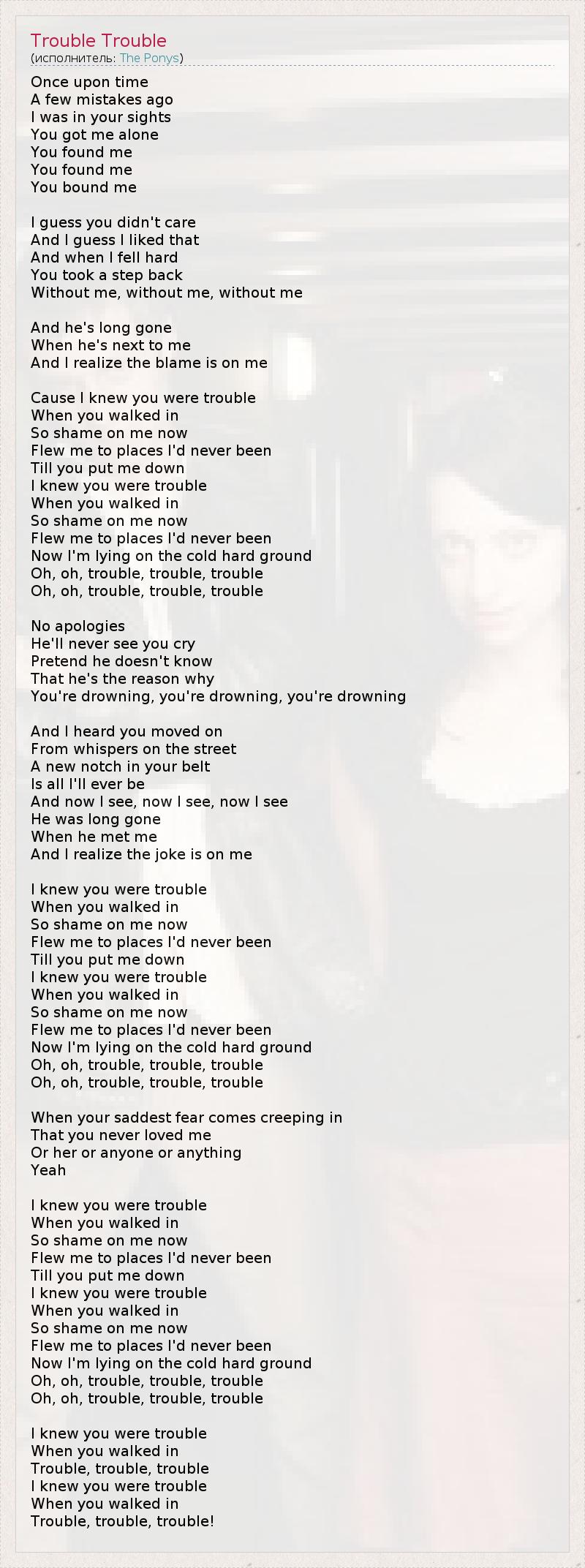 А как ты думаешь, о чем песня "Trouble Trouble" ?