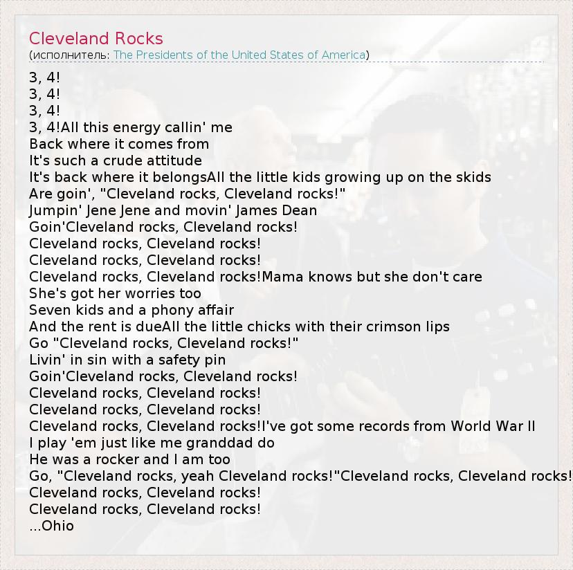 А как ты думаешь, о чем песня "Cleveland Rocks" ?