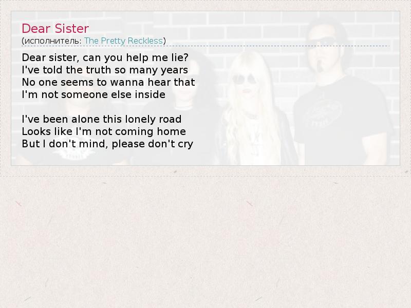 А как ты думаешь, о чем песня "Dear Sister" ?