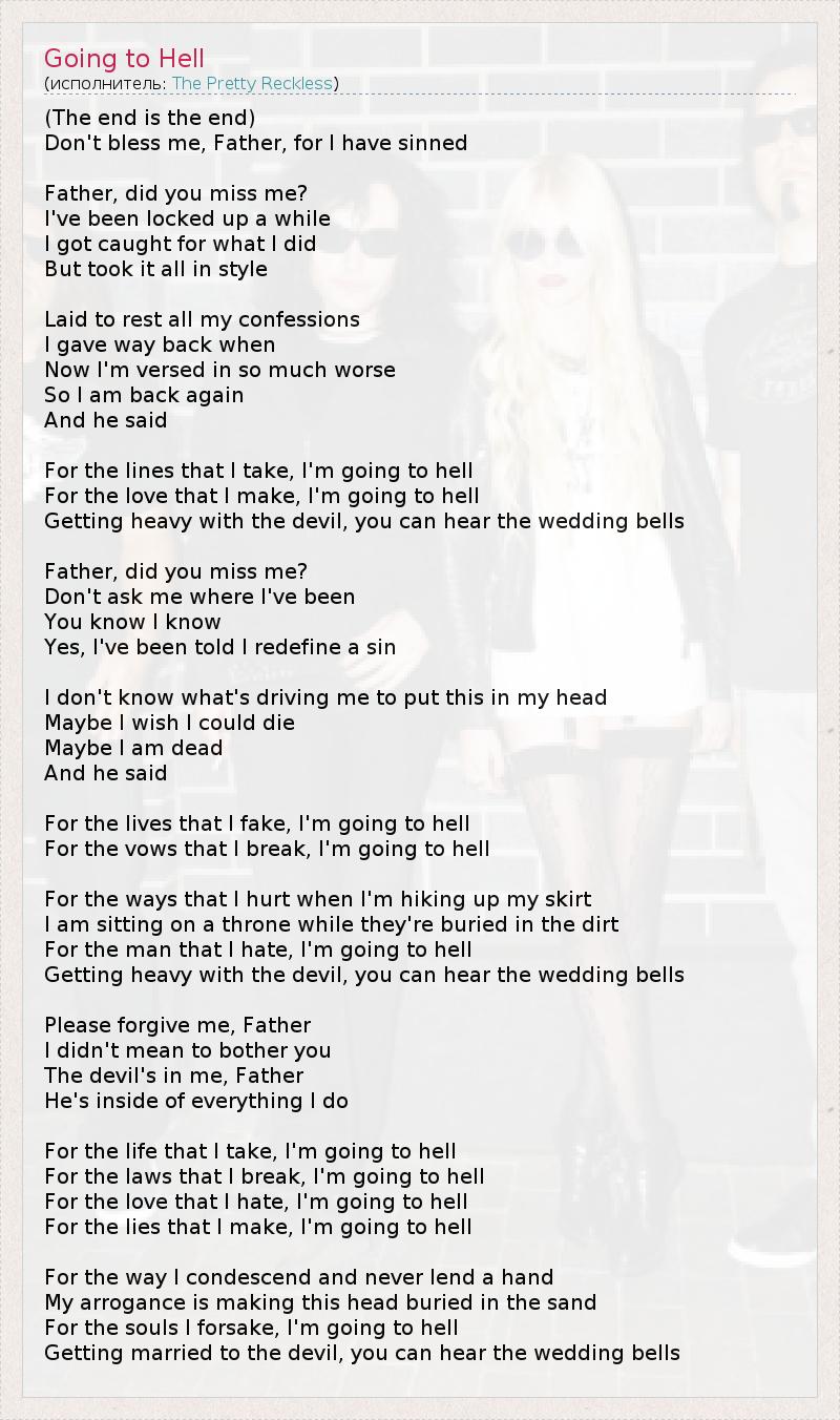 А как ты думаешь, о чем песня "Going to Hell" ?