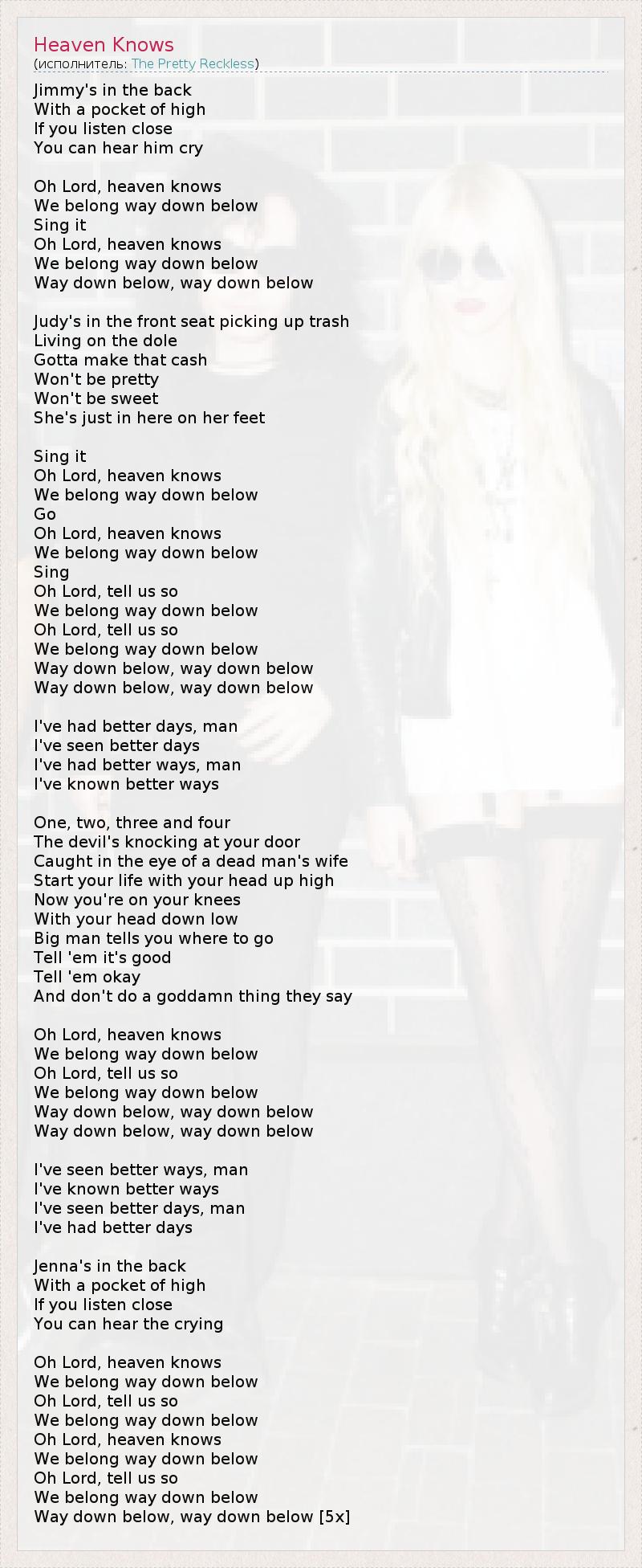 А как ты думаешь, о чем песня "Heaven Knows" ?