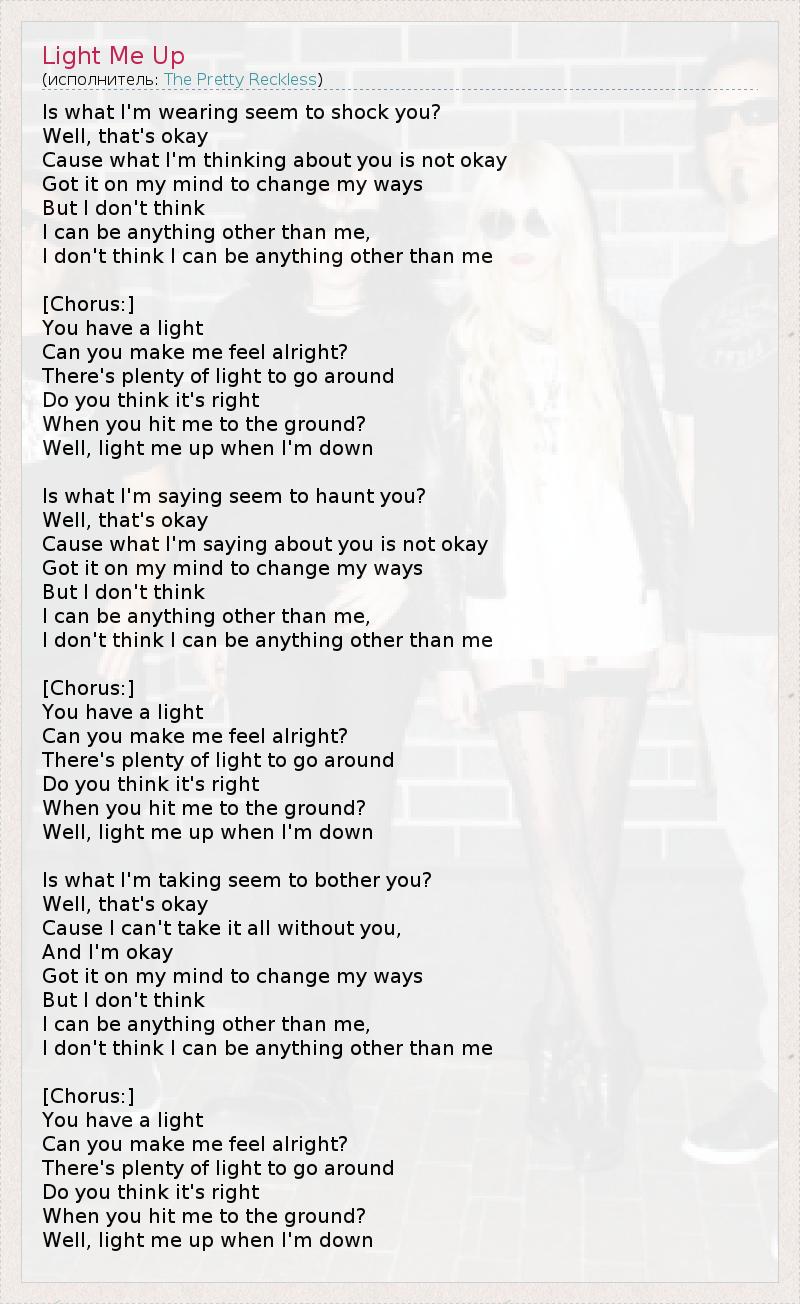 А как ты думаешь, о чем песня "Light Me Up" ?