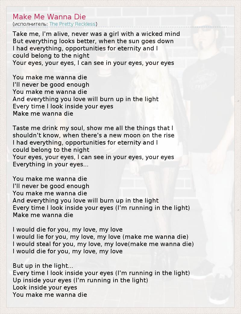 А как ты думаешь, о чем песня "Make Me Wanna Die" ?