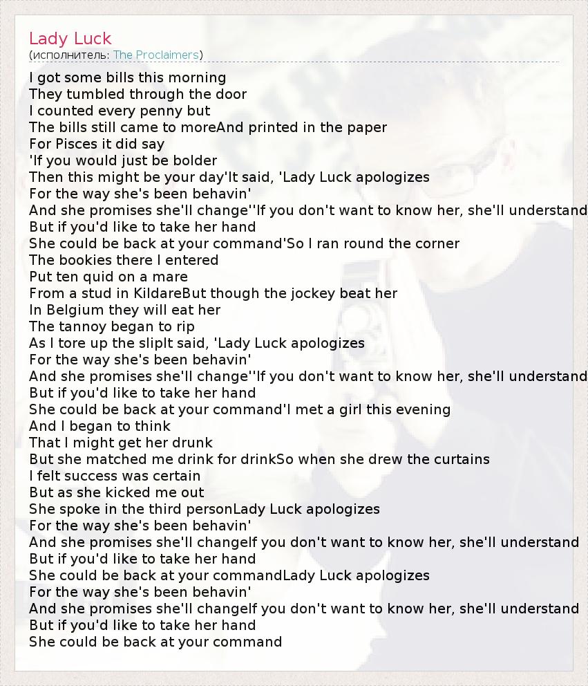 А как ты думаешь, о чем песня "Lady Luck" ?