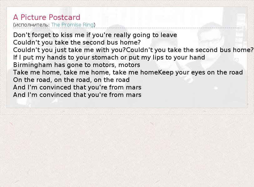 А как ты думаешь, о чем песня "A Picture Postcard" ?