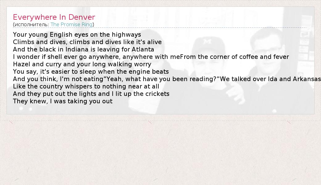 А как ты думаешь, о чем песня "Everywhere In Denver" ?