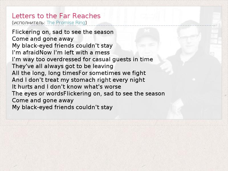 ГлавнаяИсполнителиThe Promise RingLetters to the Far Reaches