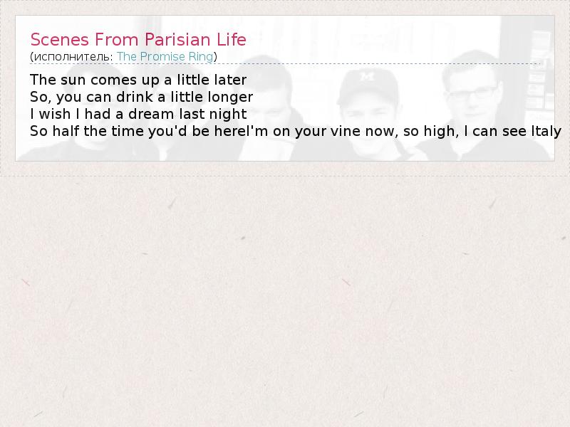 А как ты думаешь, о чем песня "Scenes From Parisian Life" ?