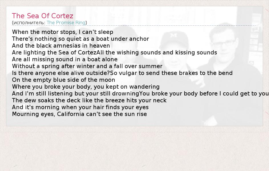А как ты думаешь, о чем песня "The Sea Of Cortez" ?