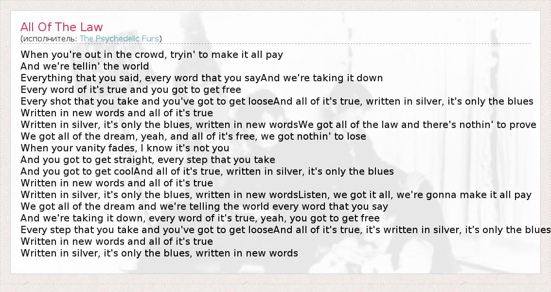 А как ты думаешь, о чем песня "All Of The Law" ?