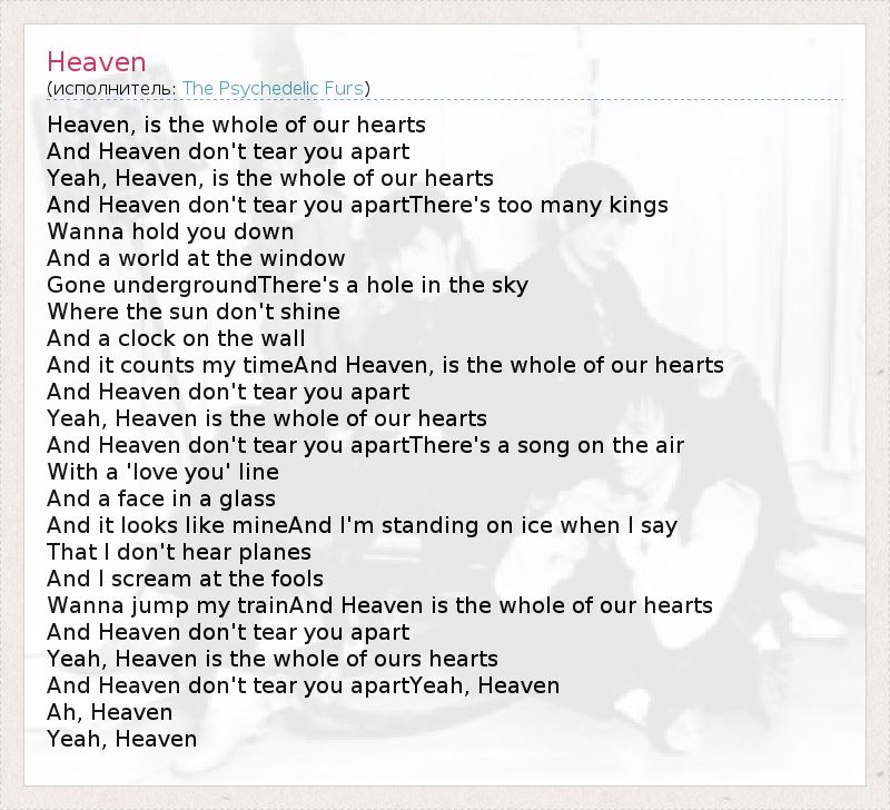 Wanna jump my trainAnd Heaven is the whole of our hearts