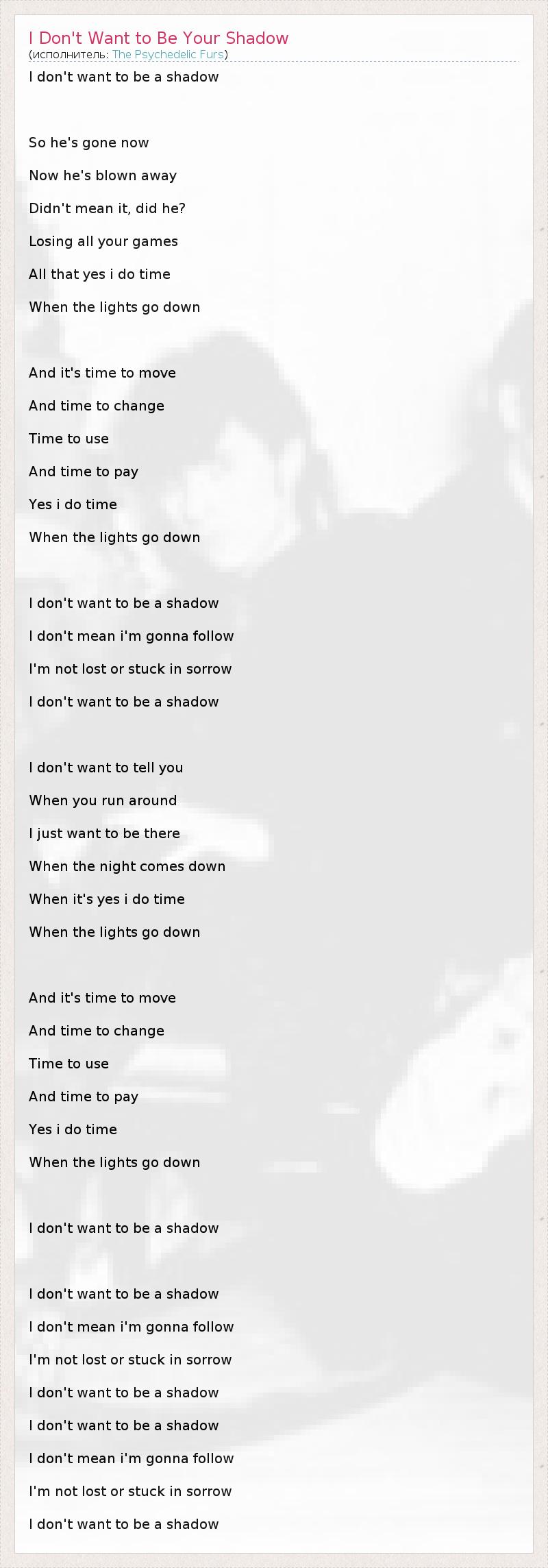 А как ты думаешь, о чем песня "I Don't Want to Be Your Shadow" ?