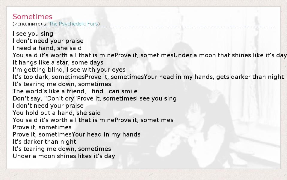 А как ты думаешь, о чем песня "Sometimes" ?