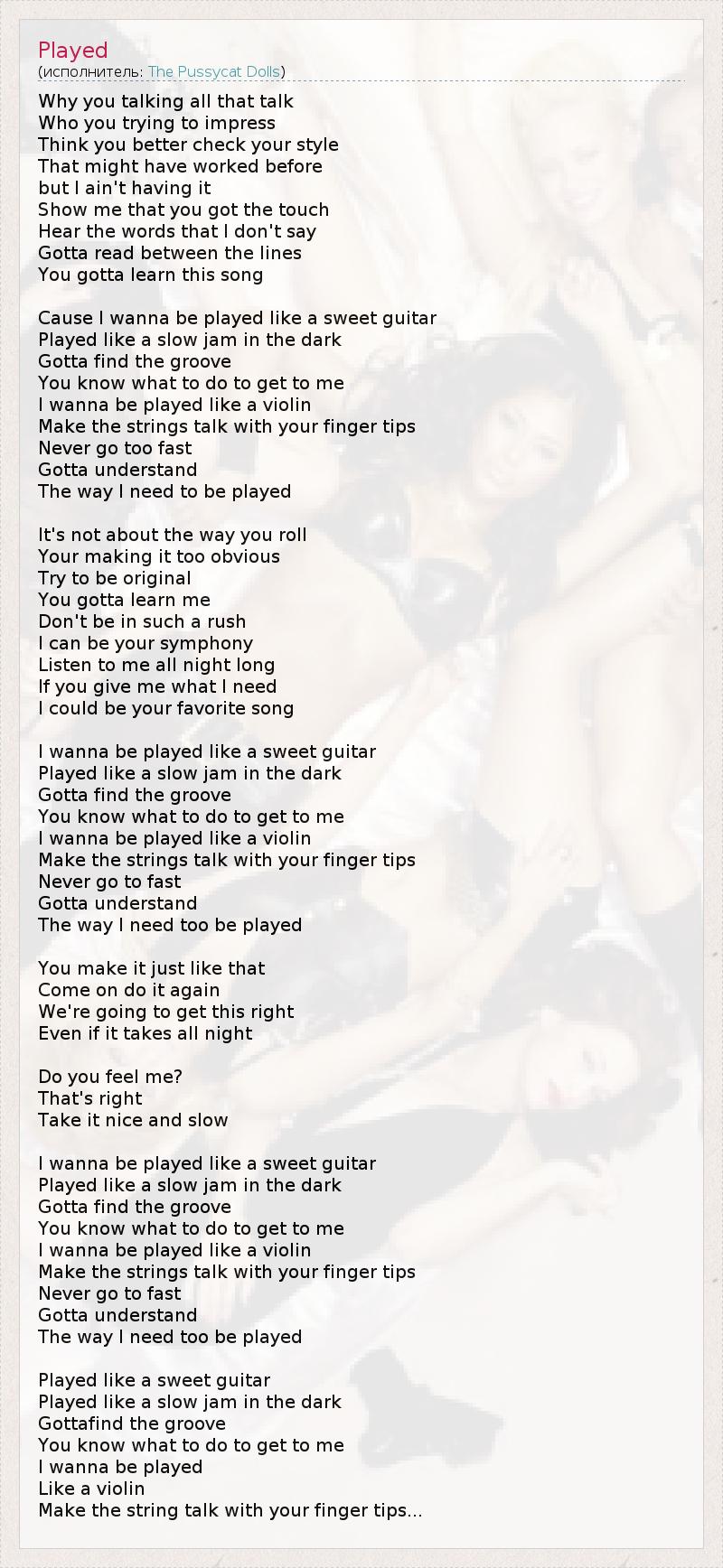 Потому что я хочу, чтобы ты играл на мне, как на сладкоголосой гитаре,