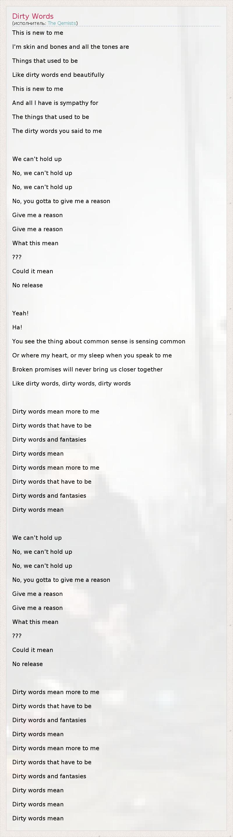А как ты думаешь, о чем песня "Dirty Words" ?