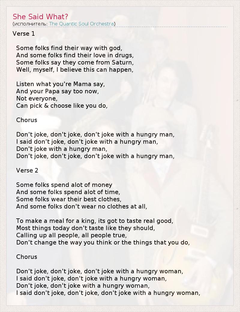 I said don't joke, don't joke, don't joke with a hungry woman,
