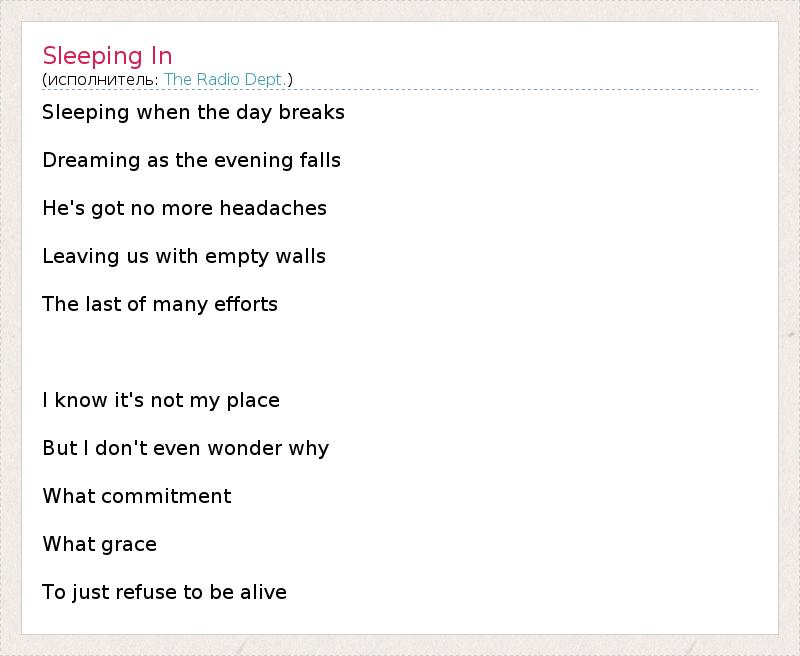 А как ты думаешь, о чем песня "Sleeping In" ?