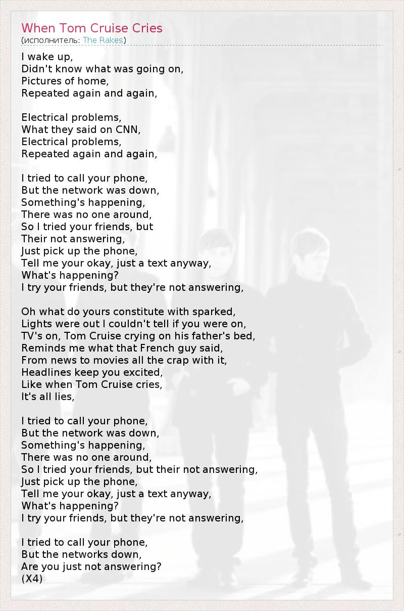 А как ты думаешь, о чем песня "When Tom Cruise Cries" ?