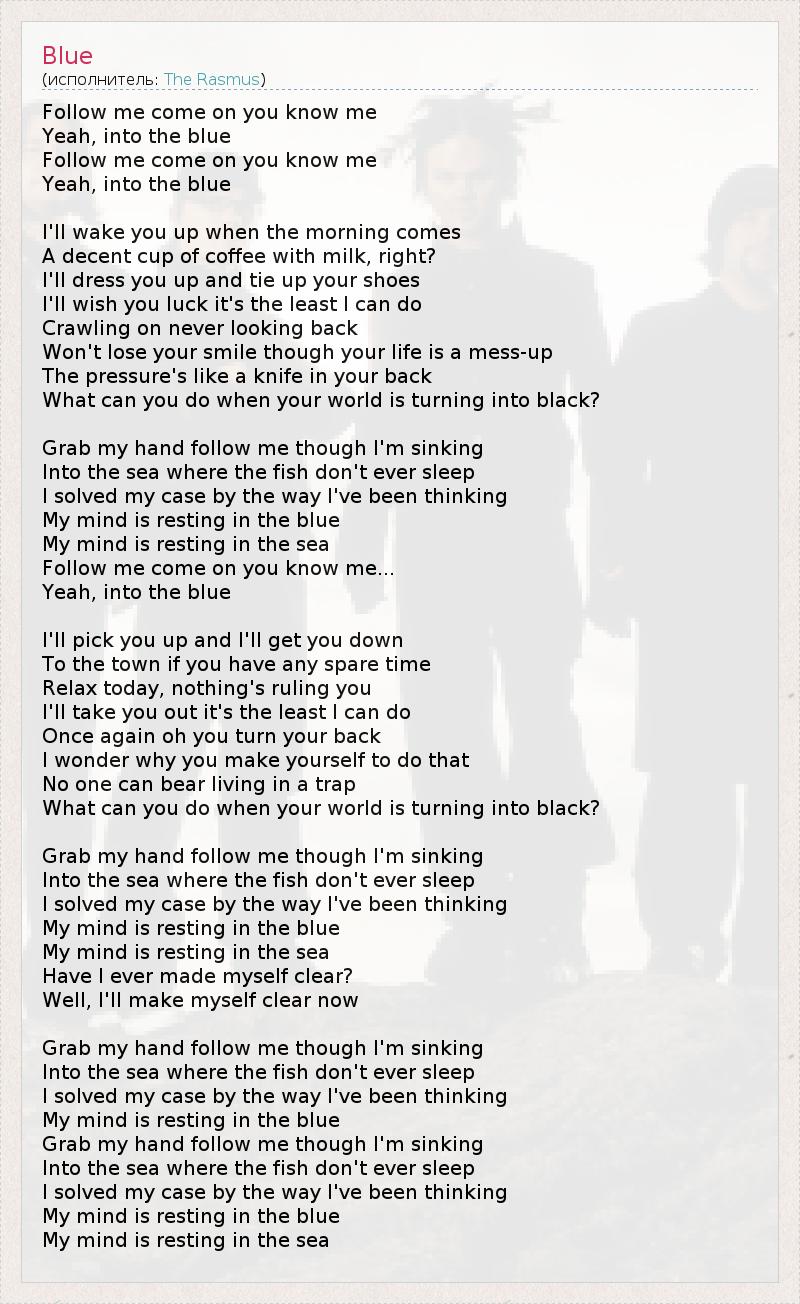 Иди за мной и держи мою руку, даже если я буду тонуть