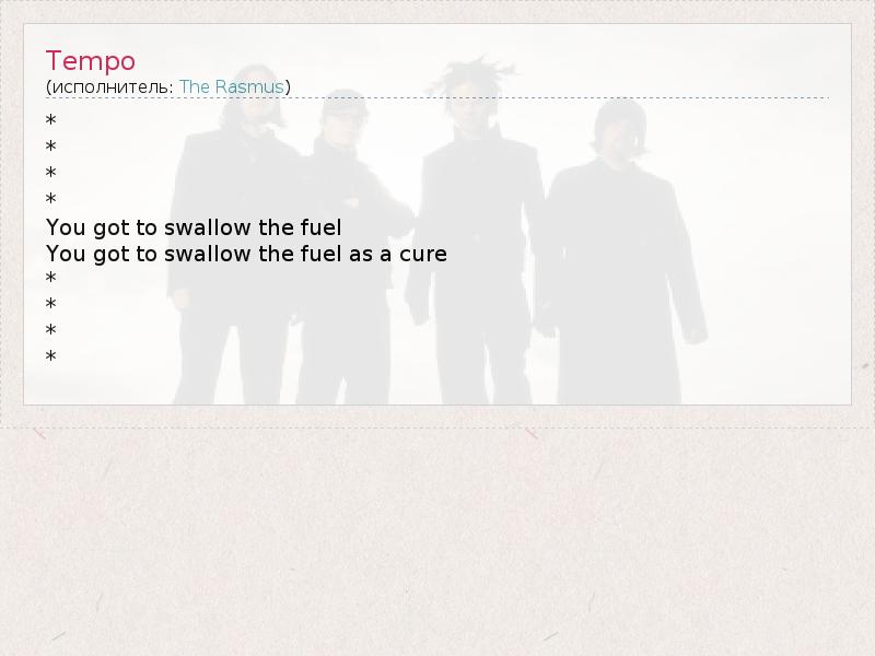 * * * * You got to swallow the fuel You got to swallow the fuel as a cure * * * *