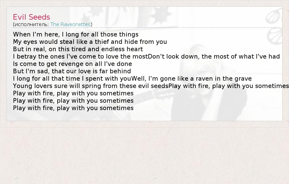 А как ты думаешь, о чем песня "Evil Seeds" ?