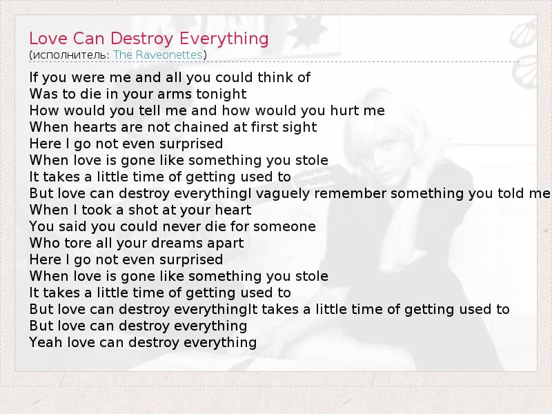 А как ты думаешь, о чем песня "Love Can Destroy Everything" ?