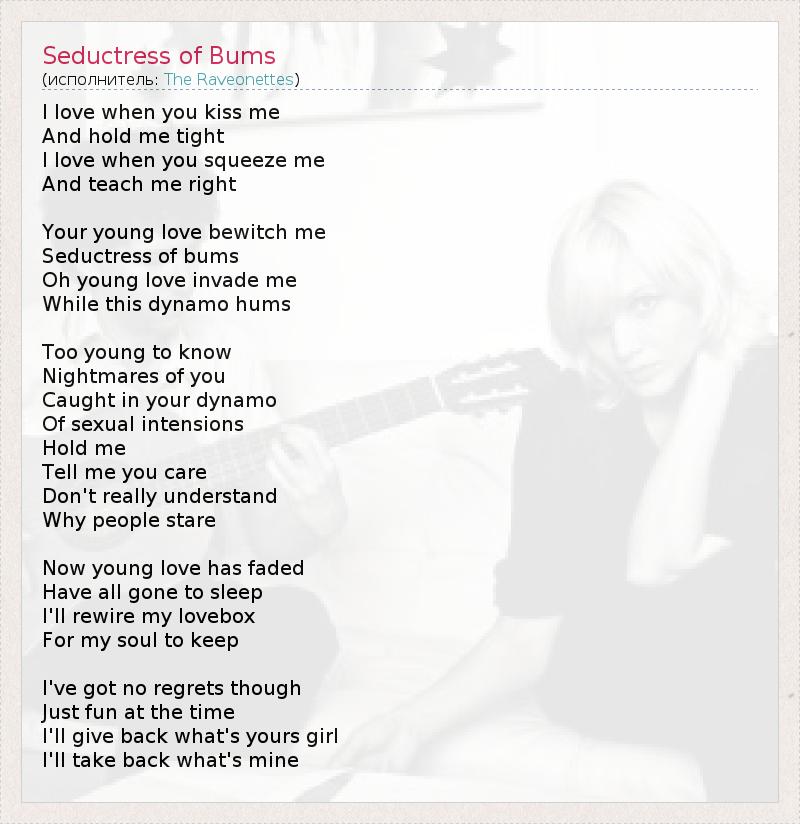 А как ты думаешь, о чем песня "Seductress of Bums" ?
