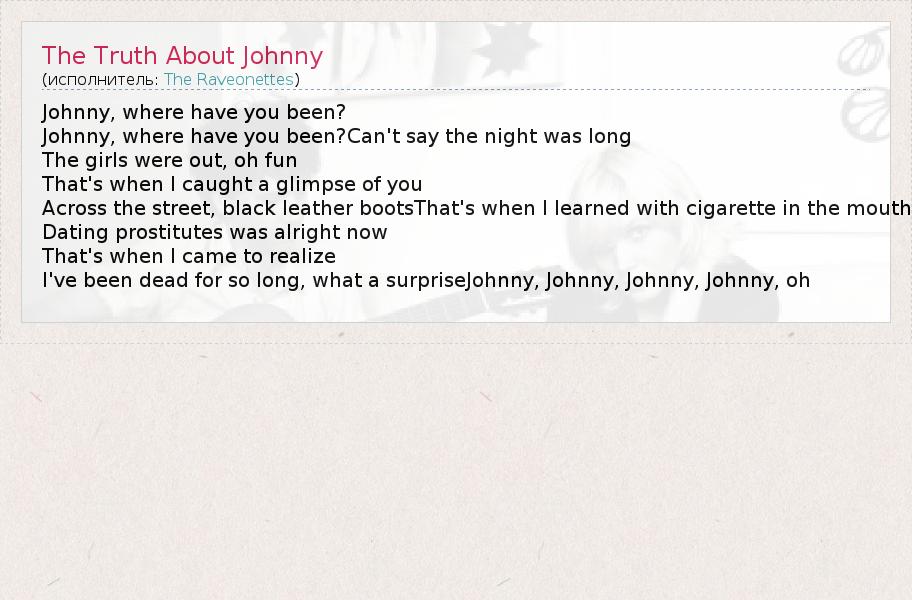 А как ты думаешь, о чем песня "The Truth About Johnny" ?