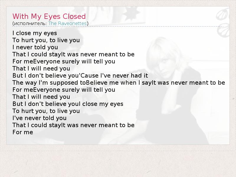 А как ты думаешь, о чем песня "With My Eyes Closed" ?